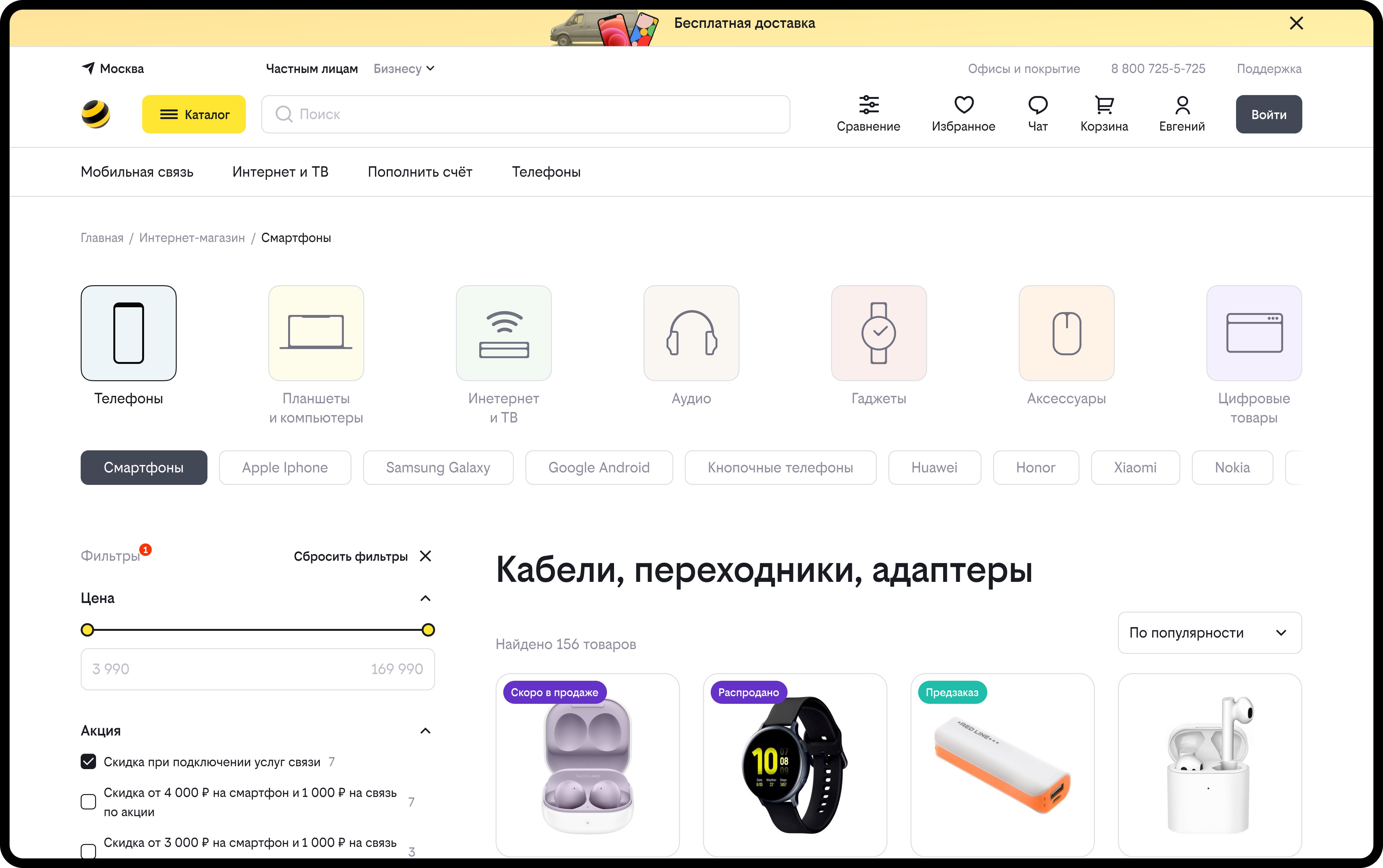 For the pages I owned, the approach was a mix of wireframing and going straight to high-fidelity where the direction was already clear. I made decisions such as simplifying the navigation structure to reduce depth, and redesigning the online shop's main page with filters that surfaced the top-selling product categories making the purchase path more direct. I also worked on the data plans page and contributed to adaptive design and product cards across the shop.